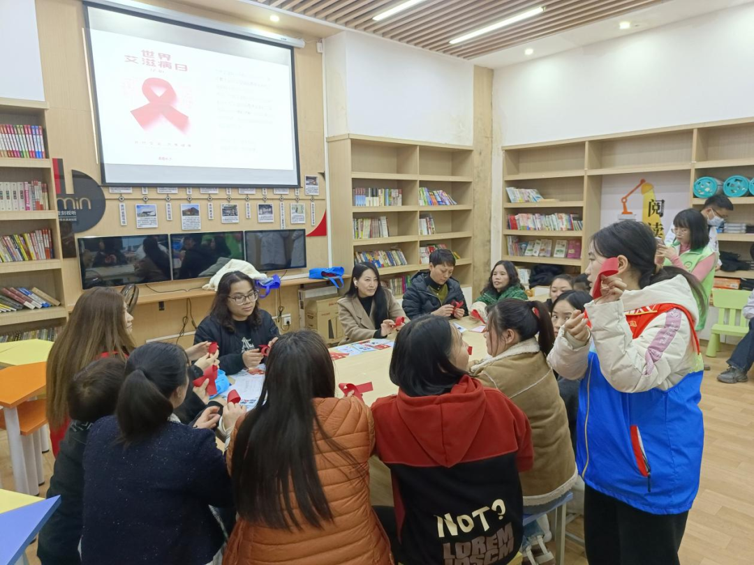 活动现场,居民通过观看《艾滋病知识科普》视频了解艾滋病的基本知识,随后在医务人员的介绍中详细了解艾滋病的传播途径、预防措施、症状以及人文关怀等相关知识,倡导健康、文明的生活方式,帮助居民科学认识艾滋病。之后社工带领居民制作红丝带,了解红丝带的意义,并呼吁大家共同参与艾滋病防治工作,形成合力,树立正确的认识,减少社会对艾滋病病毒感染者的歧视和恐惧,营造良好的社会氛围。