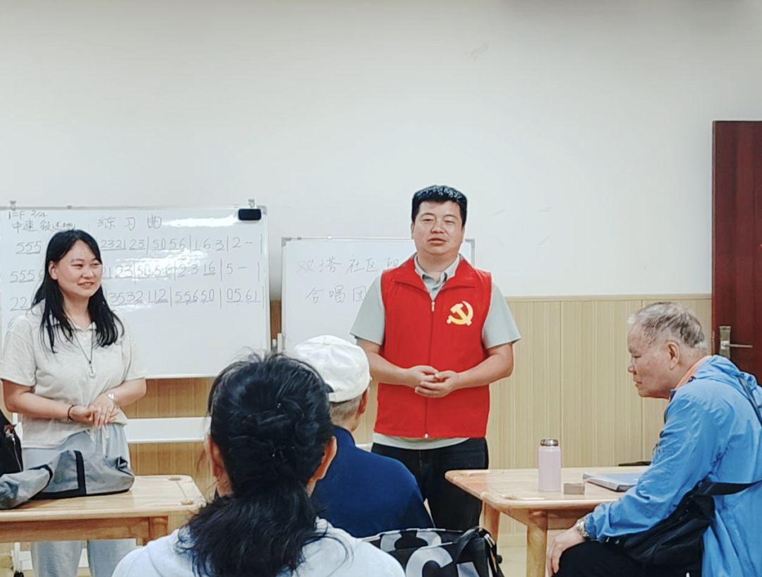 热爱音乐的胡老师在推动双塔社区“文化”志愿服务队伍建设的过程中积极、负责,他主动担任团长,从场地的选择到学员的招募,胡老师用自己的实际行动传递双塔社区志愿者的温暖与担当。
